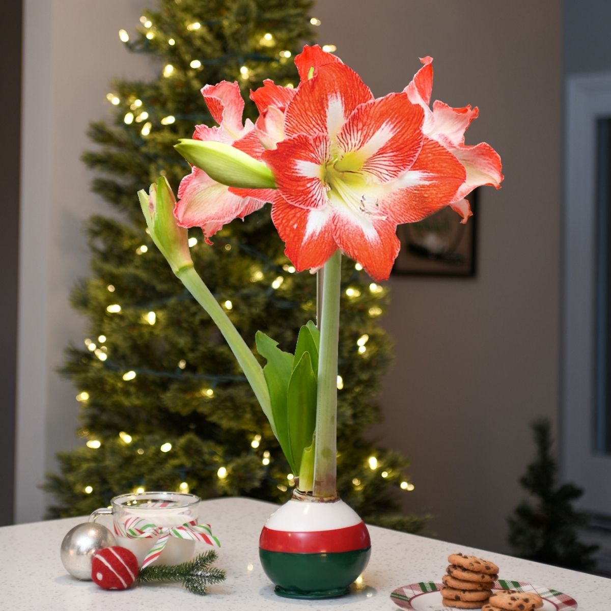 Waxed Amaryllis bulbs don’t need water—each bulb already contains all the nutrients and moisture it needs to bloom.